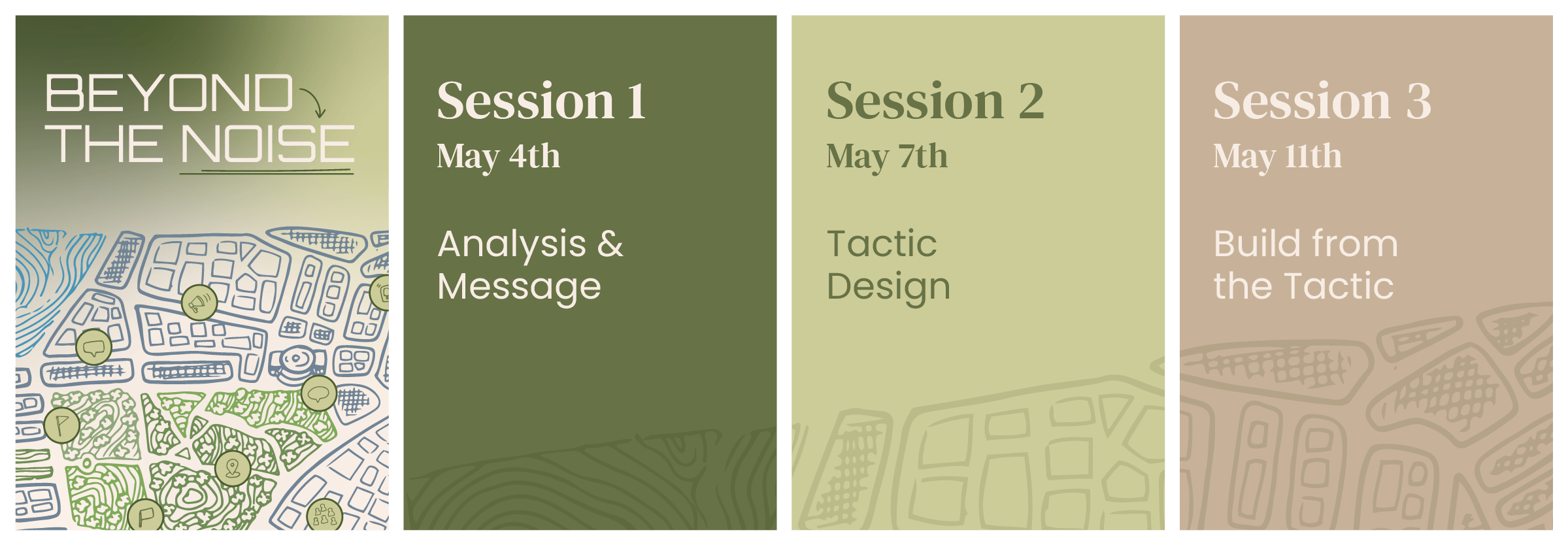 Beyond the Noise is a 3-part online training where teams design creative, high-impact tactics that can break through, make their issue relevant, and build momentum toward winning.