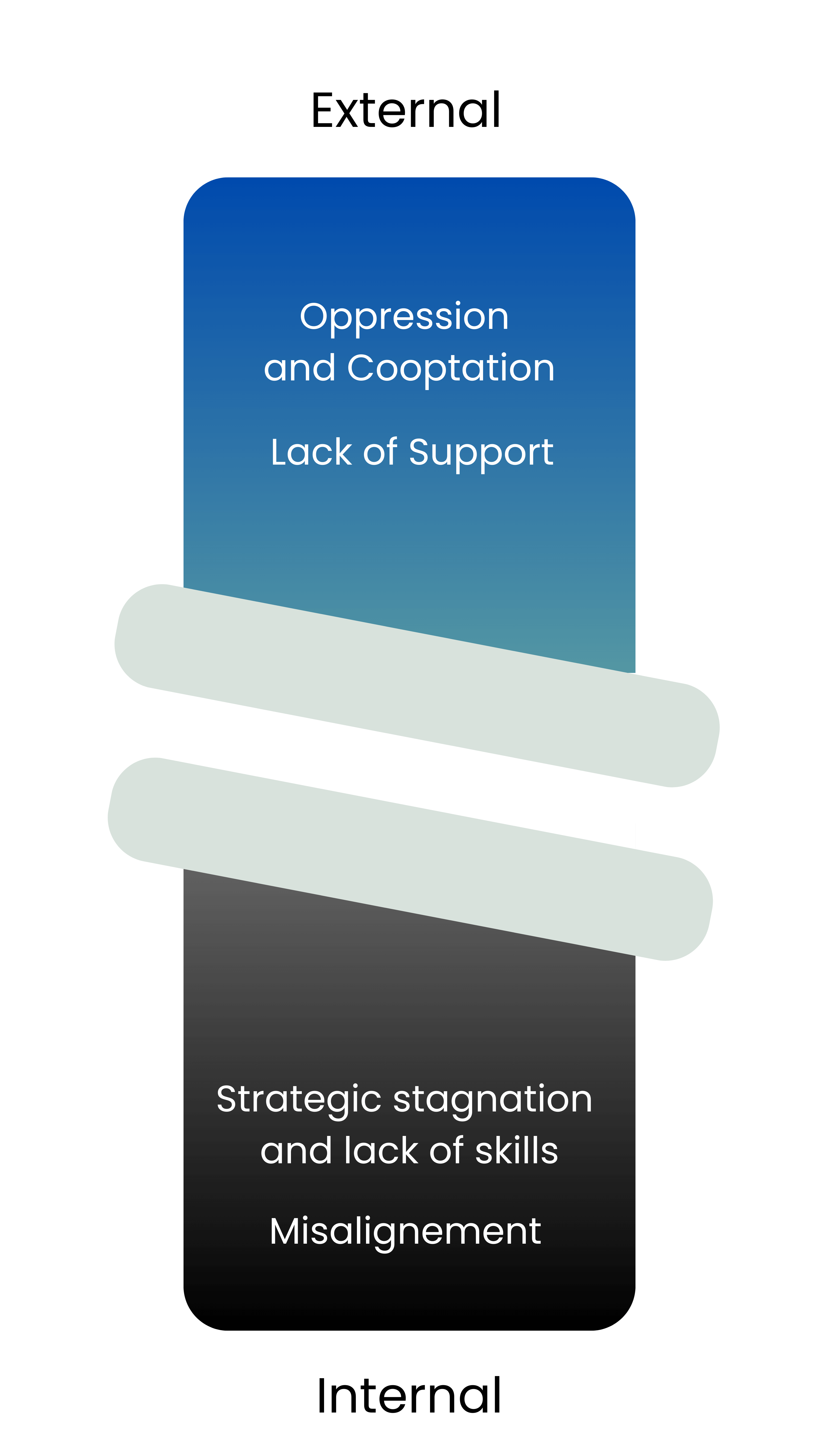 Internal dynamics within social movements exacerbate these problems. Misalignment among organizational leaders threatens to tear movements apart with projects that are misaligned from broader strategic objectives and goals, resulting to futile work and energy expended.